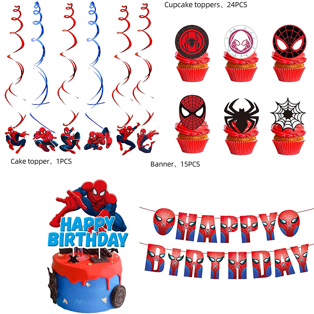 Spiderman Theme Happy Birthday Party Tableware Boys Plates Tablecloth Banner Balloon Supplies Set