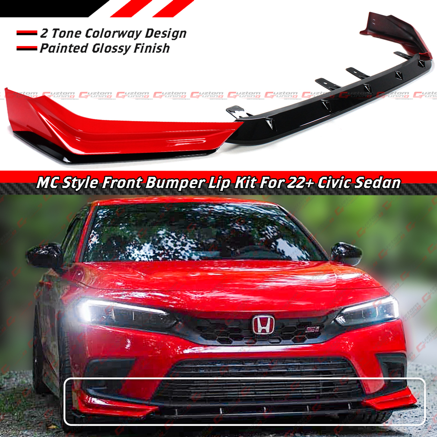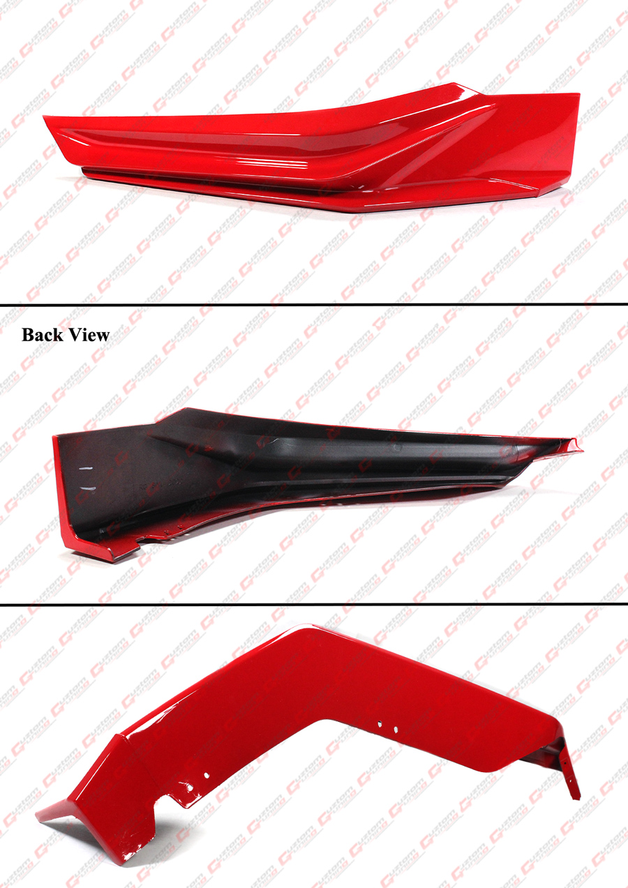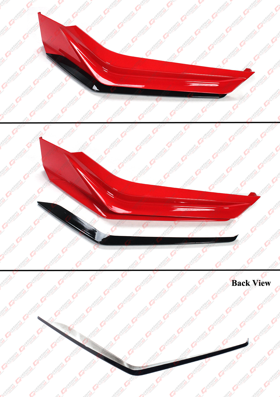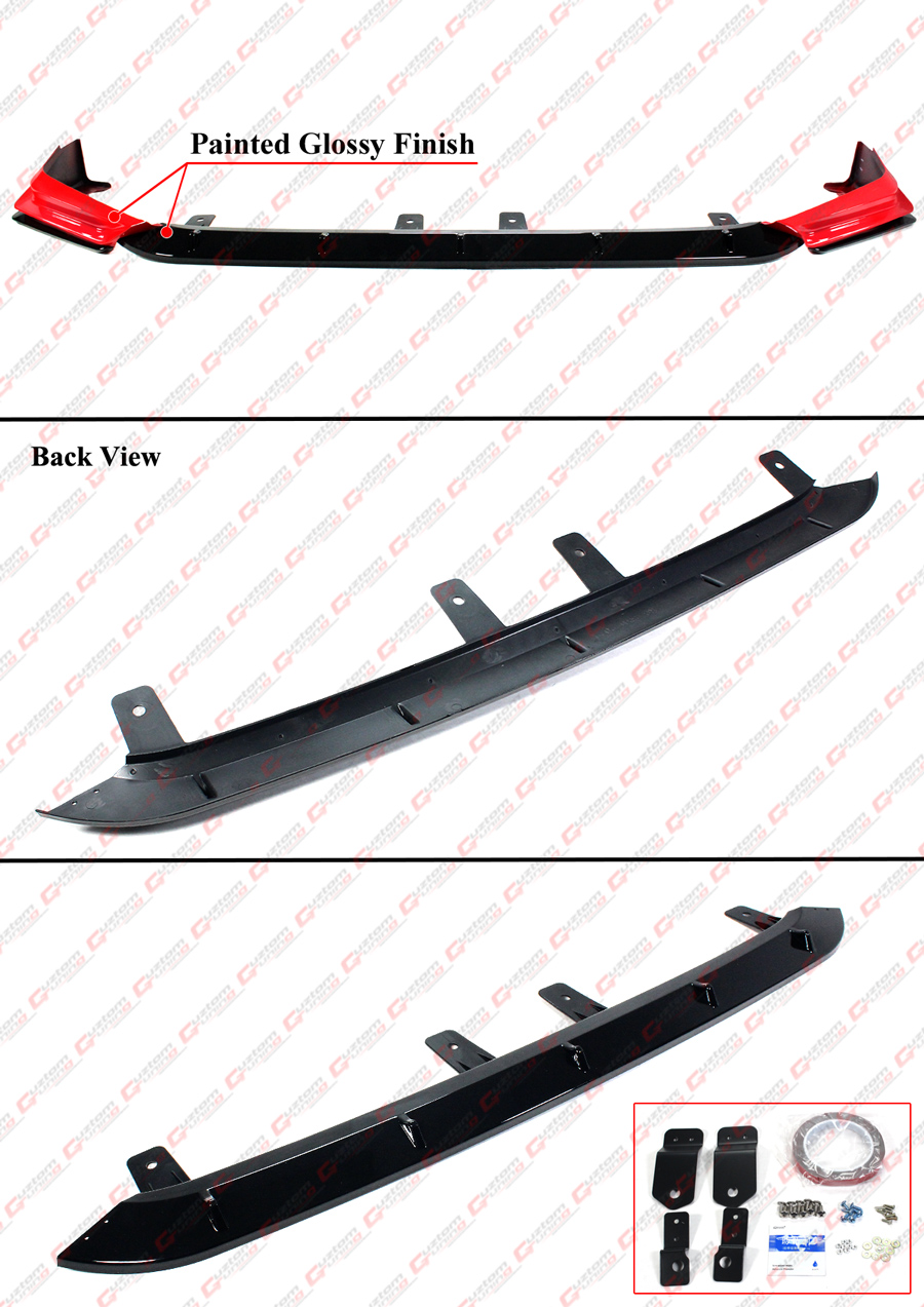 - Special 2 Tone Color Finish: The 2 Side Corner Splitter Are Painted in Rally Red Color and The Lower Lip is Painted in Glossy Black Finish. The 2 Add-On Accent Pieces Are Also In Gloss Black Finish.