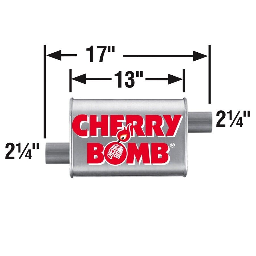 Cherry Bomb Turbo Mufflers are made for high performance with a quieter sound than other mufflers. They're built from completely mechanically-locked aluminized steel, with a reversible design that makes for flexible installation options. You'll increase your engine's horsepower and torque while slightly improving its gas mileage. The tone is nice and mellow at idle, and comes out deep but not too loud when you lay on the pedal. Choose between standard and small body size, with a variety of inlet/outlet options as well as sizes and lenths to fit most vehicles.