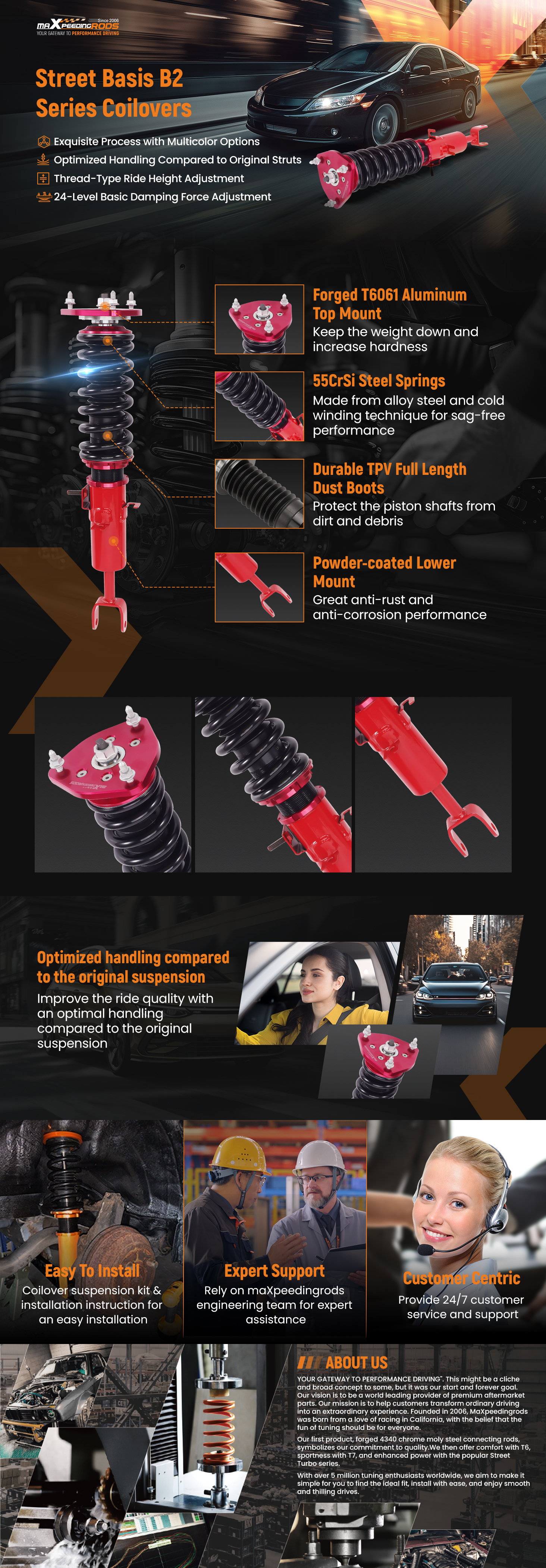 - Front Damper Body Diameter: Φ55mm (2.17")