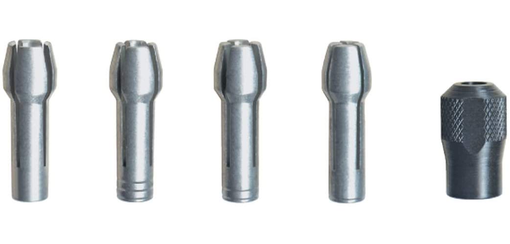 Includes (1) Quick Change Nut Set. New, Bulk Packed. Provides the optimal grip for bits offered for our rotary tool line. The collet features small identification rings around its shank. These rings correspond with the size of the collet: 0 rings = 1/8-in, 3 rings = 3/32-in, 2 rings = 1/16-in, 1 ring = 1/32-in. Individual collets are compatible with flex-shaft tool hand-pieces #235 and #237. Compatible with the Following: Dremel: 4000, 400, 398, 395, 300, 285, 275, 200, 100, 8200, 800, 780,300,8220