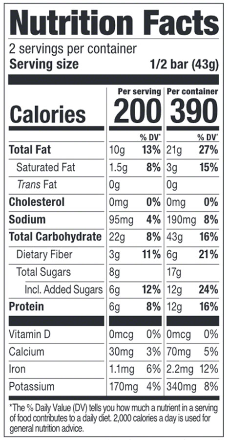 Engineered for sustained energy, each 85g bar provides 380 calories, balanced with 11g of plant-based protein and 6g of dietary fiber. Its rich omega-3 and omega-6 fatty acids from nuts and seeds support optimal brain and heart health. The high-protein, fiber-dense composition makes it an ideal meal replacement for athletes, hikers, and busy professionals.