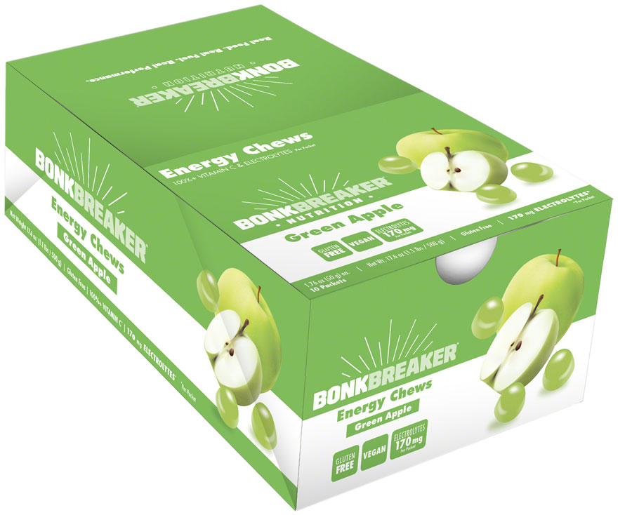 Experience Boosted Performance with Bonk Breaker Energy Chews - Green Apple (Box of 10 Packs)