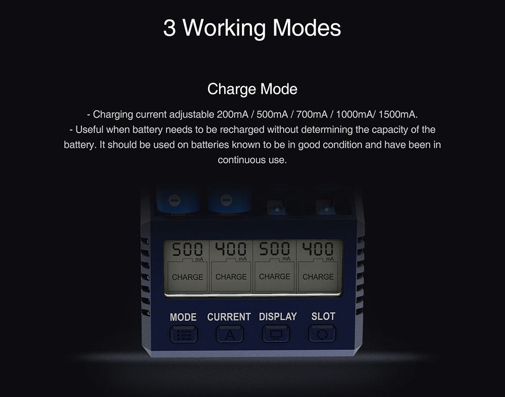 Charging batteries is usually a primitive, boring and mundane activity , and it still is . What matters during the charging activity , especially for AA/AAA NiMH battery charging ? No doubt,accuracy and safety . The creation of NC1500 charger not only arises out of need , but also from the desire to have a simple but safe and accurate charger for such battery.NC1500 has 4 independent slots and supports AA/AAA NiMH batteres , offers maximum charge rate of 1500mA.