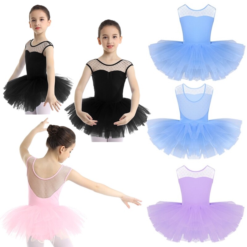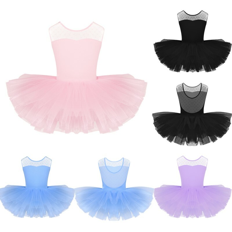 Mädchen Ballettkleid Ärmellos Ballettanzug mit Tüllrock Trikot Tanzkleid Gymnastik Tutu Kleid.