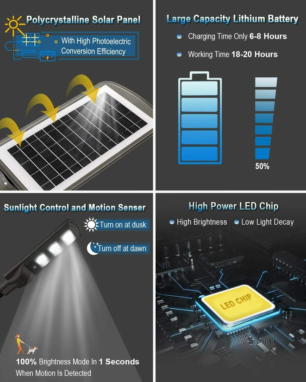 5. Built-in photocell sensor automatically turns on the light at dusk and turns off at dawn.