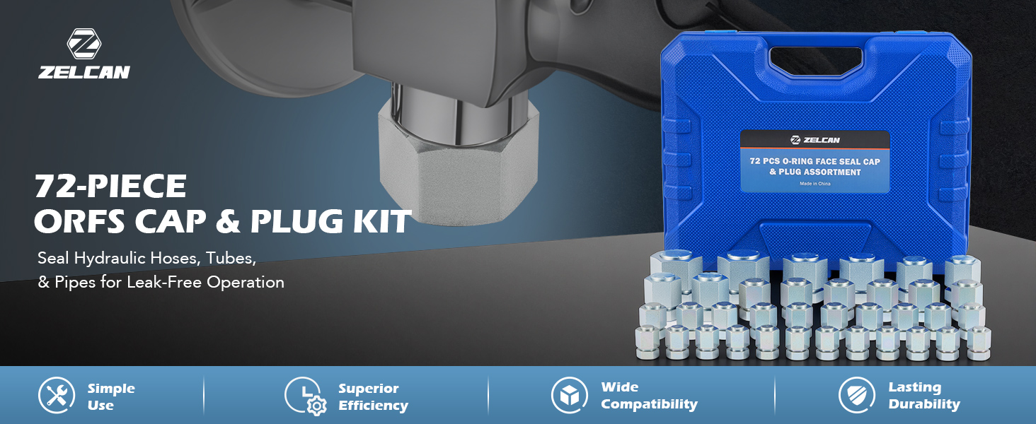 Versatile Applications: Zelcan's 72pc hydraulic hose fitting kit includes ORFS caps and plugs in -4, -6, -8, -10, -12, and -16 sizes to match the most common hydraulic fittings. Ideal for equipment maintenance in agriculture, industry, and construction