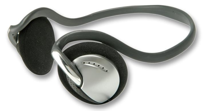 Cuffie eleganti e leggere con finitura argento/cromo e grigio con archetto curvo che si adatta perfettamente e comodamente dietro la testa. Ideale per lettori MP3, PDA e CD.