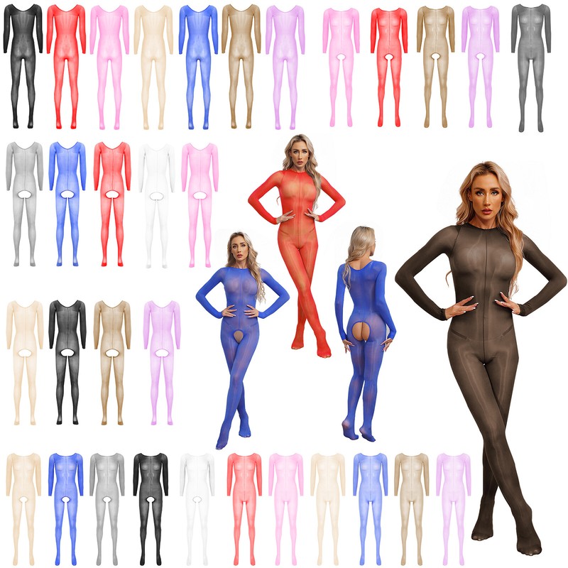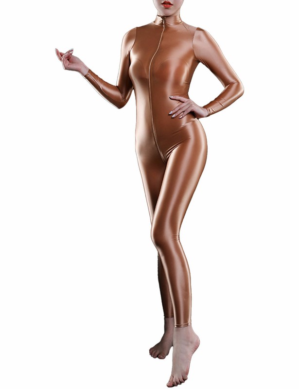Women’s one-piece shimmery smooth leotard bodysuit jumpsuit, high elasticity, one size fits most.