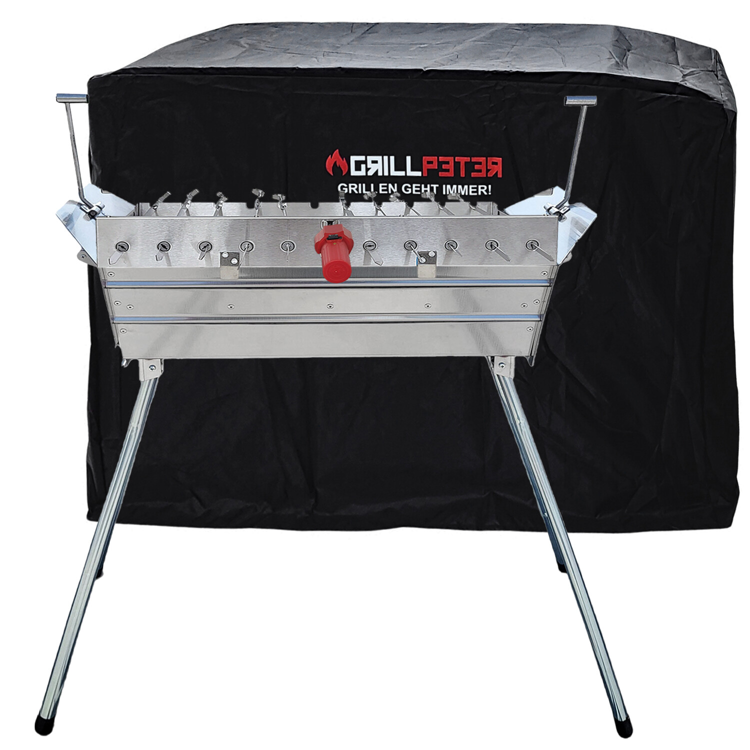 Mangal Set President Edelstahl mit Drehspießregler für 11 Spieße