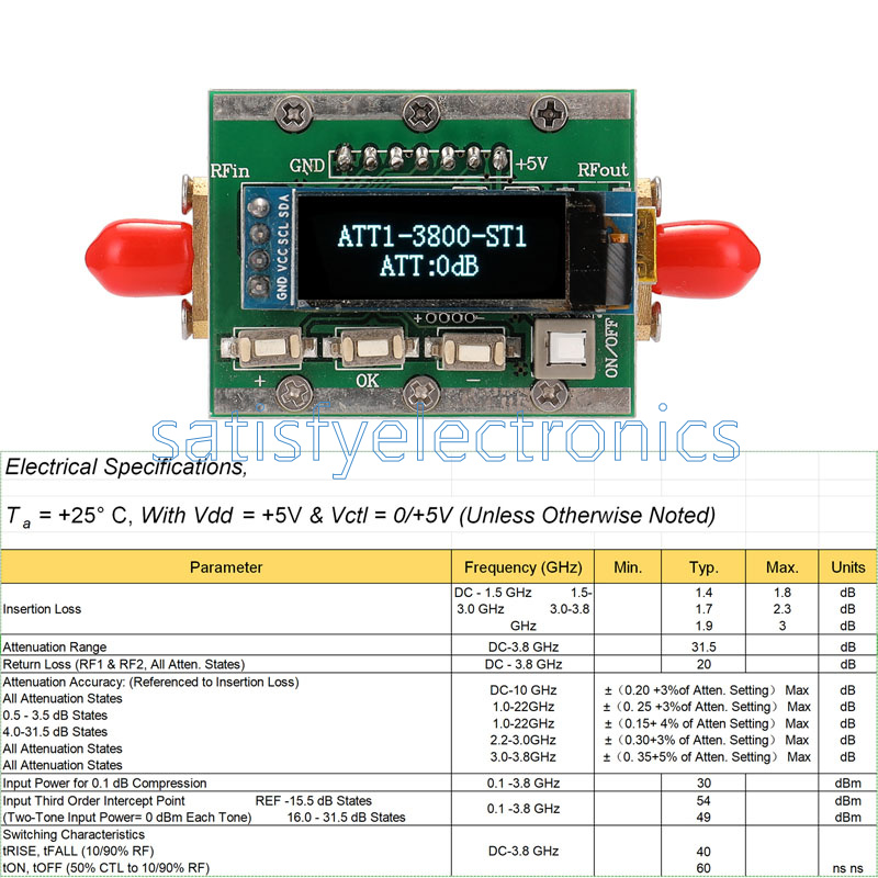 1x RF programmable attenuator 0-31dB adjustable 1dB step / back 1-3800MHz PC controllable