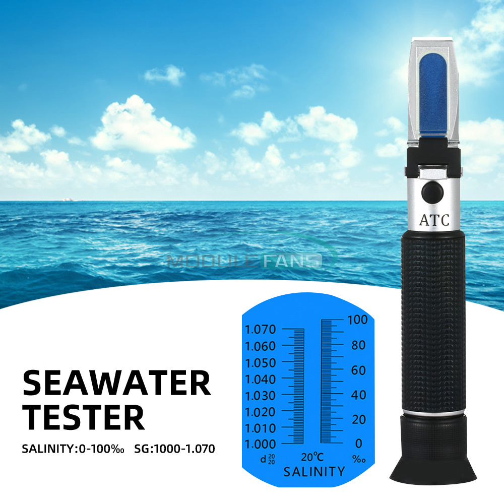 0-100% Salinity Aquarium ATC Refractometer 1.000-1.070SG Seawater Salinometer