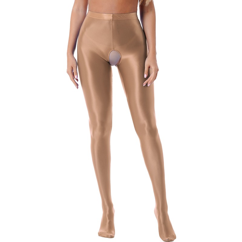Womens Glossy Crotchless Pantyhose High Waist Elastic Waistband Leggings Nightwear.