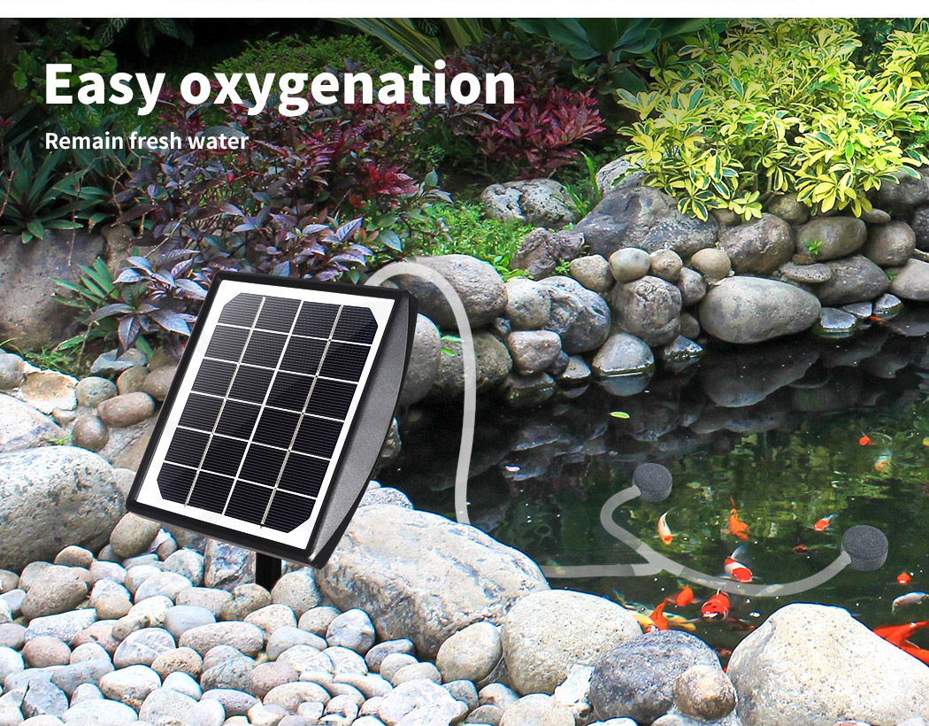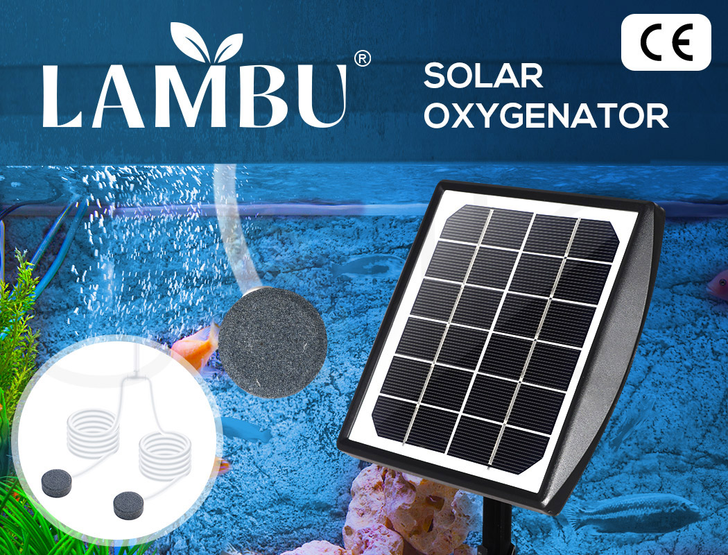 Lambu Solar Oxygenator Air Pump Powered Pool Water Pond Outdoor Fish Oxygen Tank