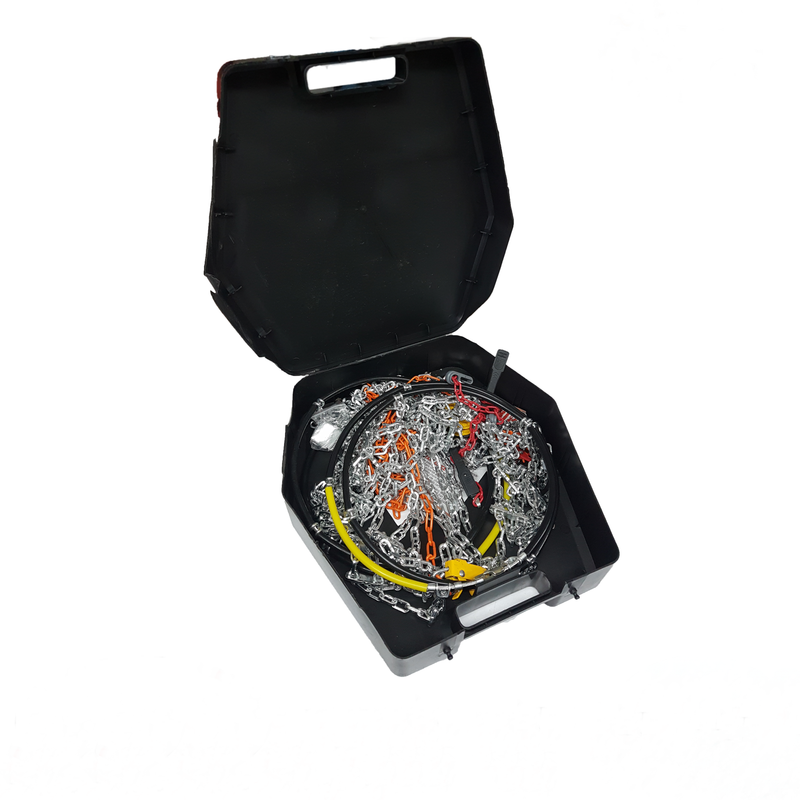 Il sistema di auto-tensionamento e i ganci in plastica antigraffio garantiscono un'installazione rapida e sicura. Dopo il montaggio e il tensionamento manuale, le catene si tendono automaticamente, evitando ulteriori fermate durante la guida.