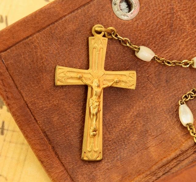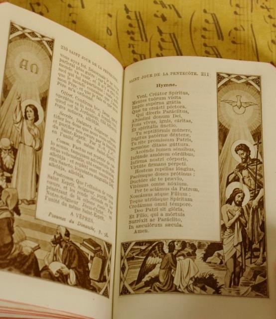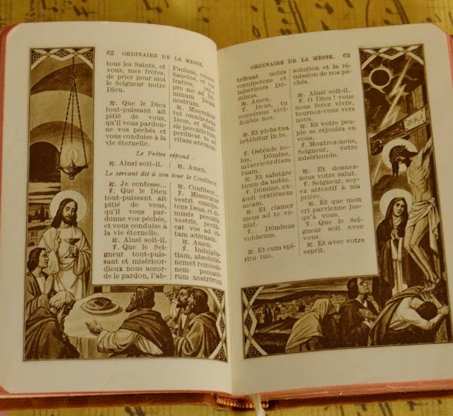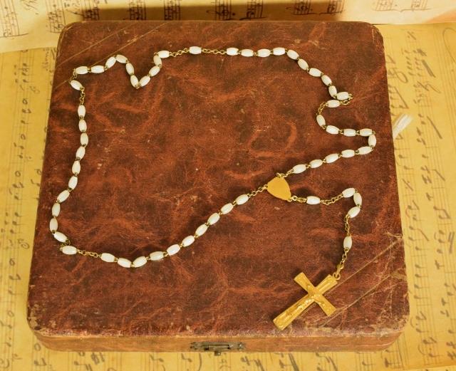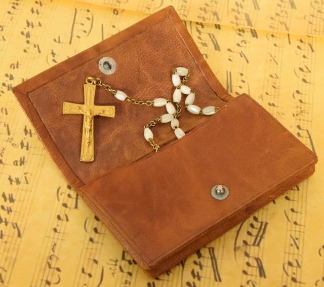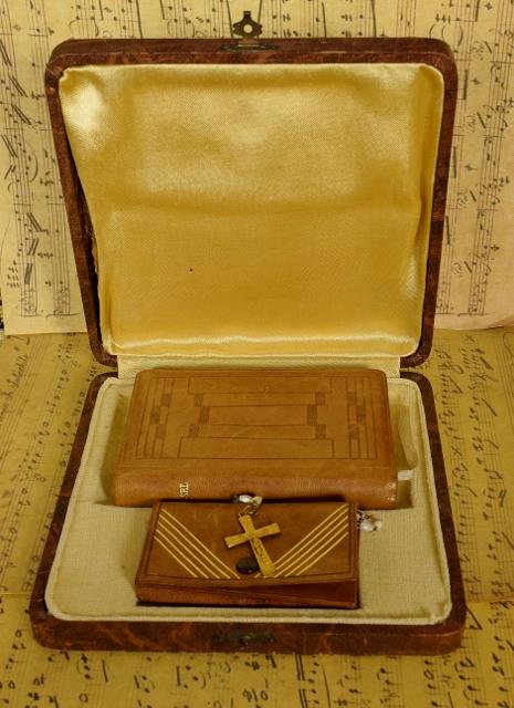 The Missel, pochette and rosary are all in good antique condition. The paper on the box has scuffed a little with the passage of time.