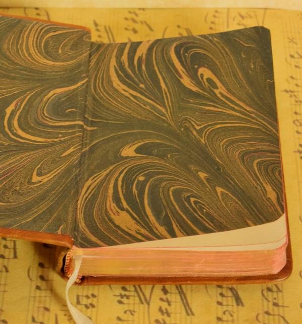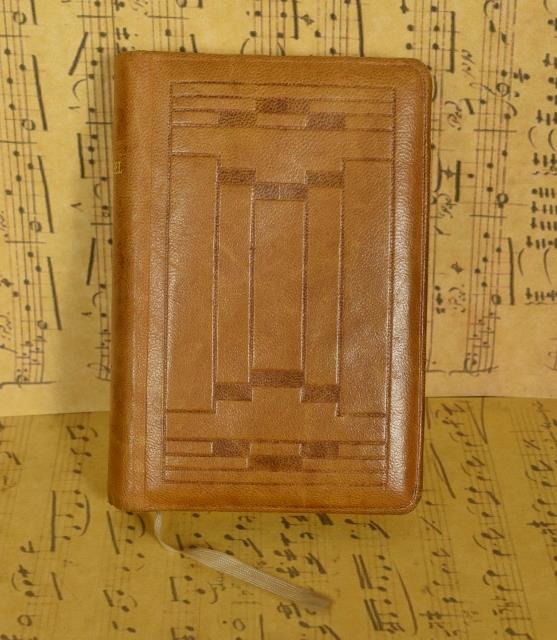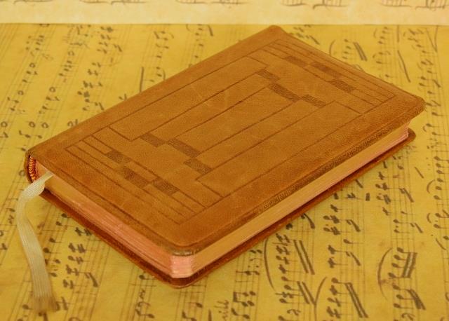 The Missel is bound in tactile leather in a lovely honey tone. The pages are beautifully illustrated and have gilded edges.