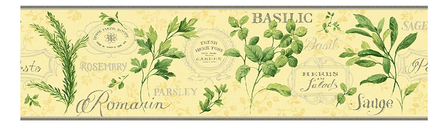 York Wallcoverings KH7041B Kitchen and Bath Aromatique Border, Yellow/Green/Taupe/Silver