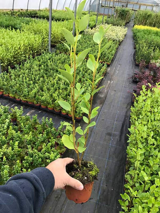 Griselinias are fast growing evergreen shrubs and trees from New Zealand, perfect for coastal planting. This plant is upright growing, and can form a narrow hedge which can be trimmed to 6-8ft and a width of only 60cm/2ft, so it won’t take up a large part of your garden. Hedges can grow up to 60cm per year. Average planting distance in 40-80cm apart depending on your preference. The closer they are planted the faster they will form a hedge.