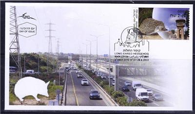 ü ISRAEL 2022 "Animals in urban area- Long Eared Hedghog " Label Machine # 001 FDC |