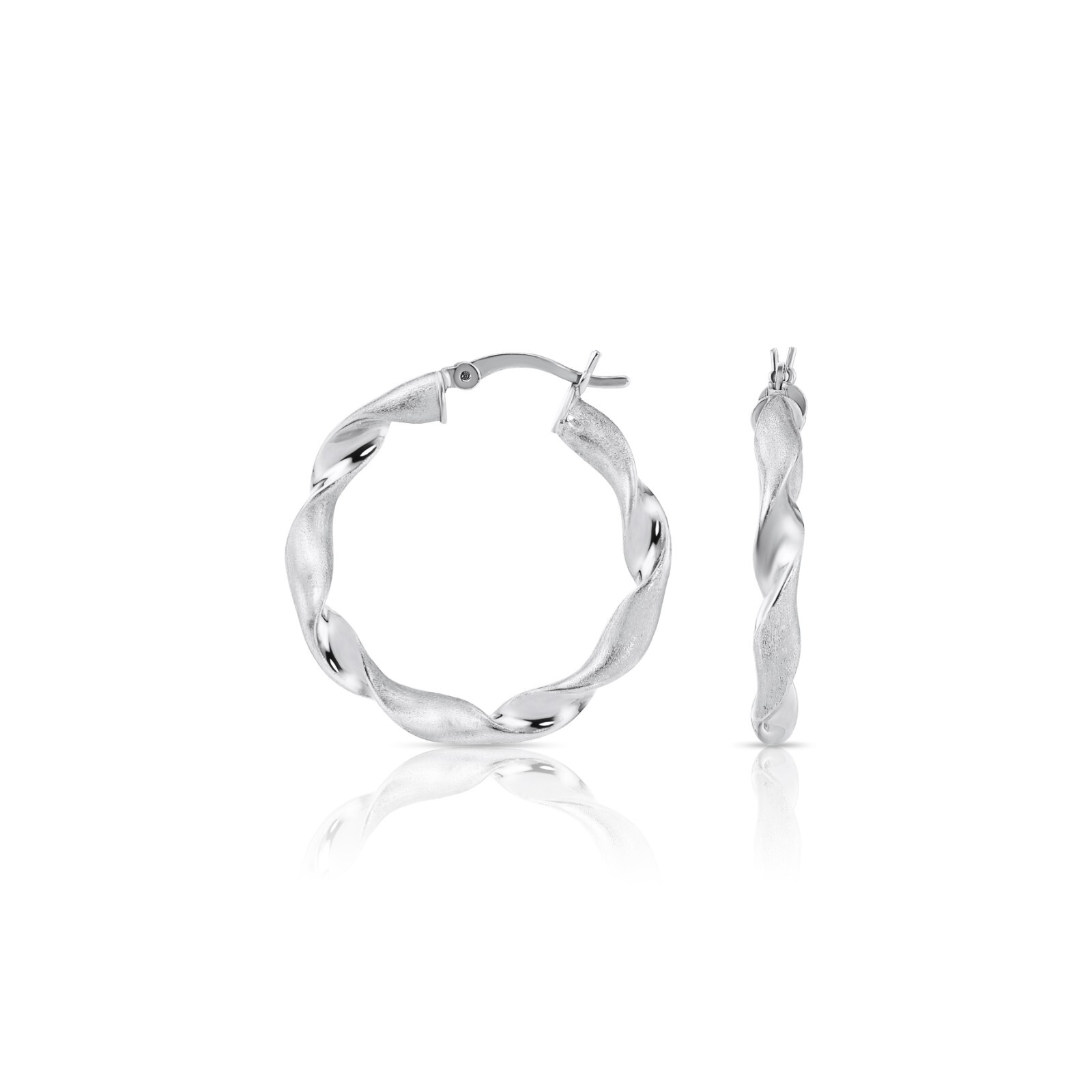 These sterling silver earrings are uniquely designed with a luxury twist style. They are combined with two beautiful finishes, polished and matte, which gives an eye-catching shine and easy with high-impact shine bright like white gold!