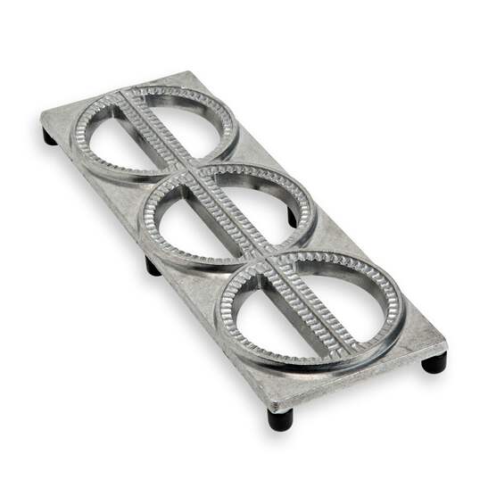 Made in the USA, this sturdy pierogi maker molds 6 crescent-shaped pierogi, ravioli, or empanadas at once. To use, place a sheet of pasta dough over the form and fill pockets with your desired filling. Brush edges with water or beaten egg and place the second sheet of pasta dough over the form. Roll a straight rolling pin across the form using pressure so it will seal and cut the pierogi or ravioli. You can boil the pierogi, or you could refrigerate or freeze for later use. Makes 6 (1.75 in x 3.5 in) Pierogies. The easiest way to cut and seal Polish pierogies, Chinese potstickers, filled tarts, etc.