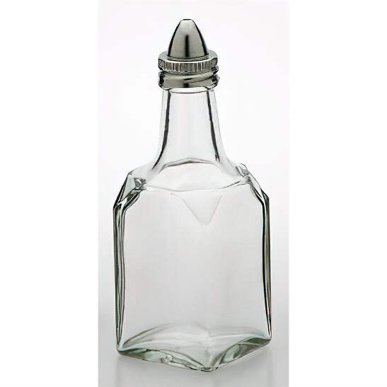 Easily and elegantly serve your favorite salad oils, vinegars, and dressings in this clear glass dispenser bottle. The chrome finish top provides portion control when pouring. Use for salad dressing, infuséd oils, flavored vinegars and more. 6-ounce capacity and measures 2 L x 2 W x 5.5 H Inches.