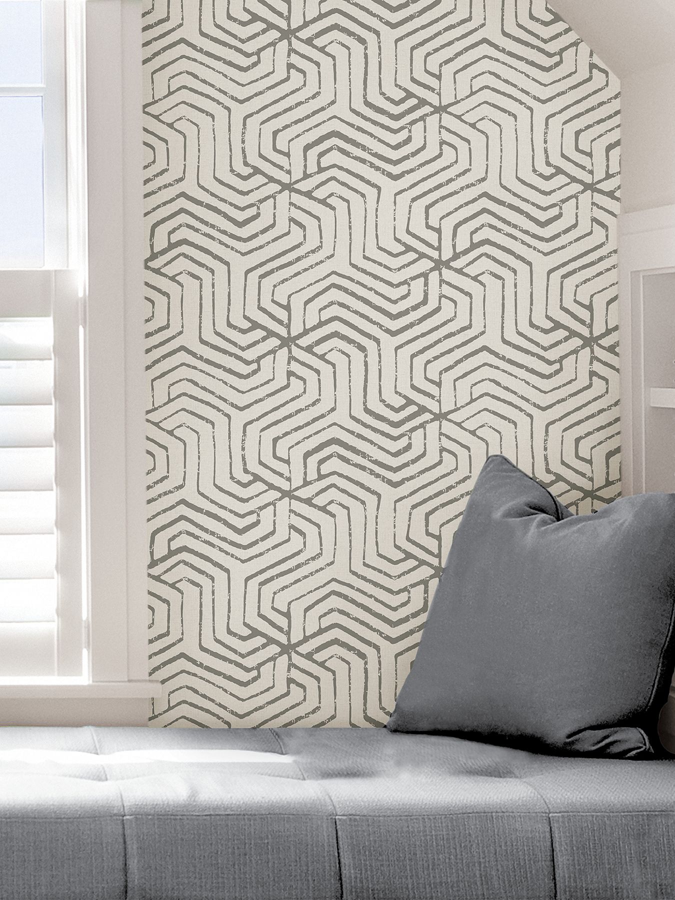 Grey Farrow Peel and Stick Wallpaper comes on one roll that measures 20.5 inches wide by 18 feet long.