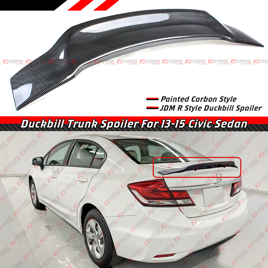 - JDM R Style High Kick Duckbill Painted Carbon Fiber Look Trunk Spoiler At Reasonable Price.