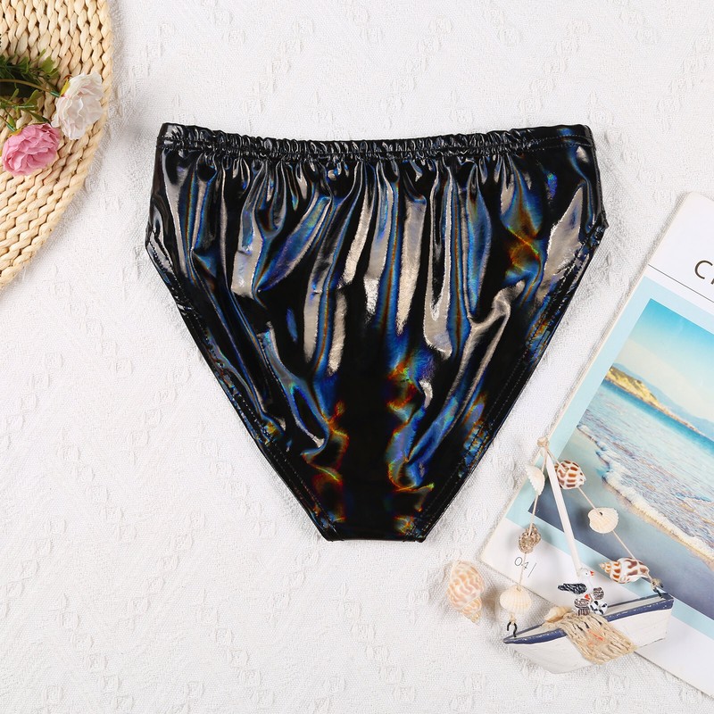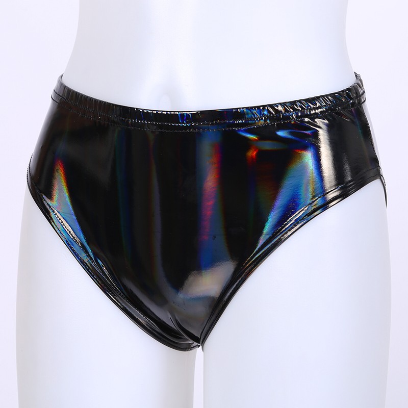 Womens Patent Leather Briefs Underwear Elastic Waistband Panties.