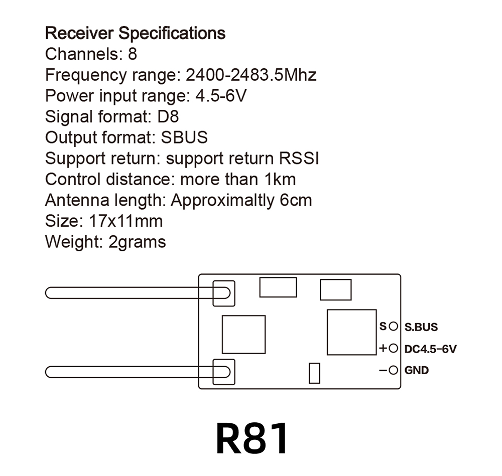 2.4GHz Over 1KM SBUS Nano Receiver Compatible FrSky D8 TX16S Transmitter,2400-2483.5Mhz Frequency range, Support Return RSSI for RC Drone.