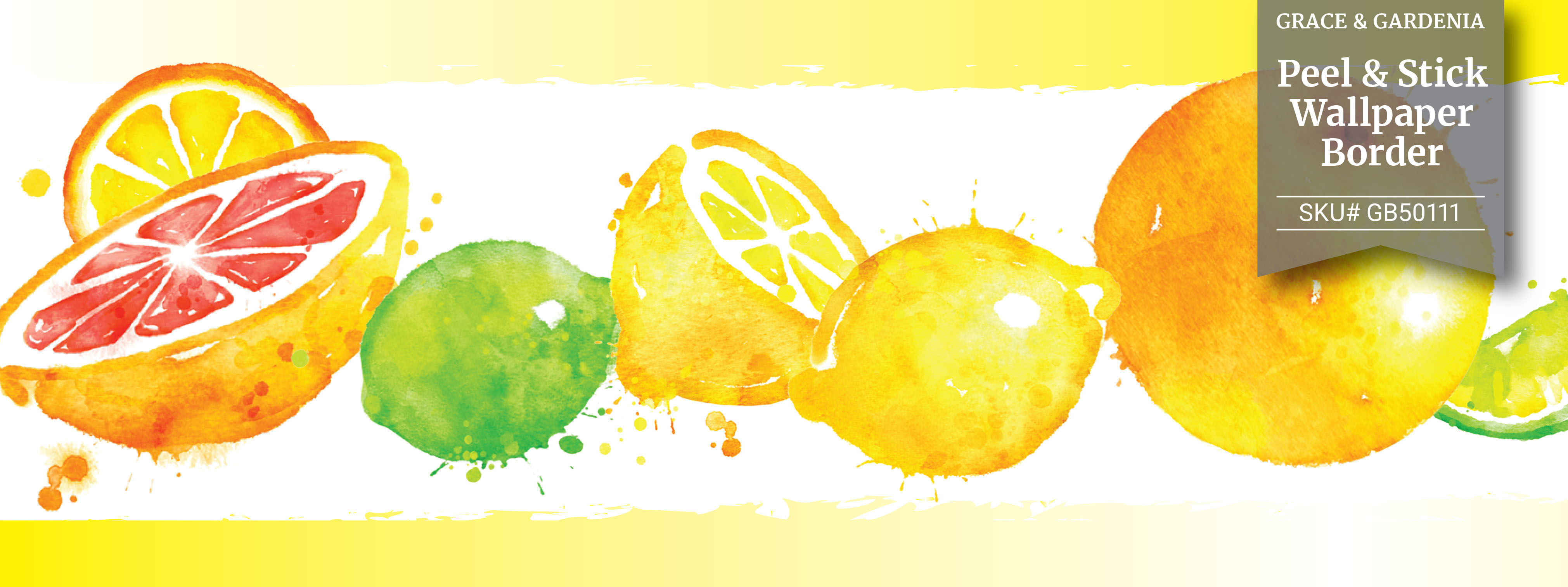GB50111 Grace & Gardenia Citrus Splash Peel and Stick Wallpaper Border 10in Height x 15ft Yellow Orange Green