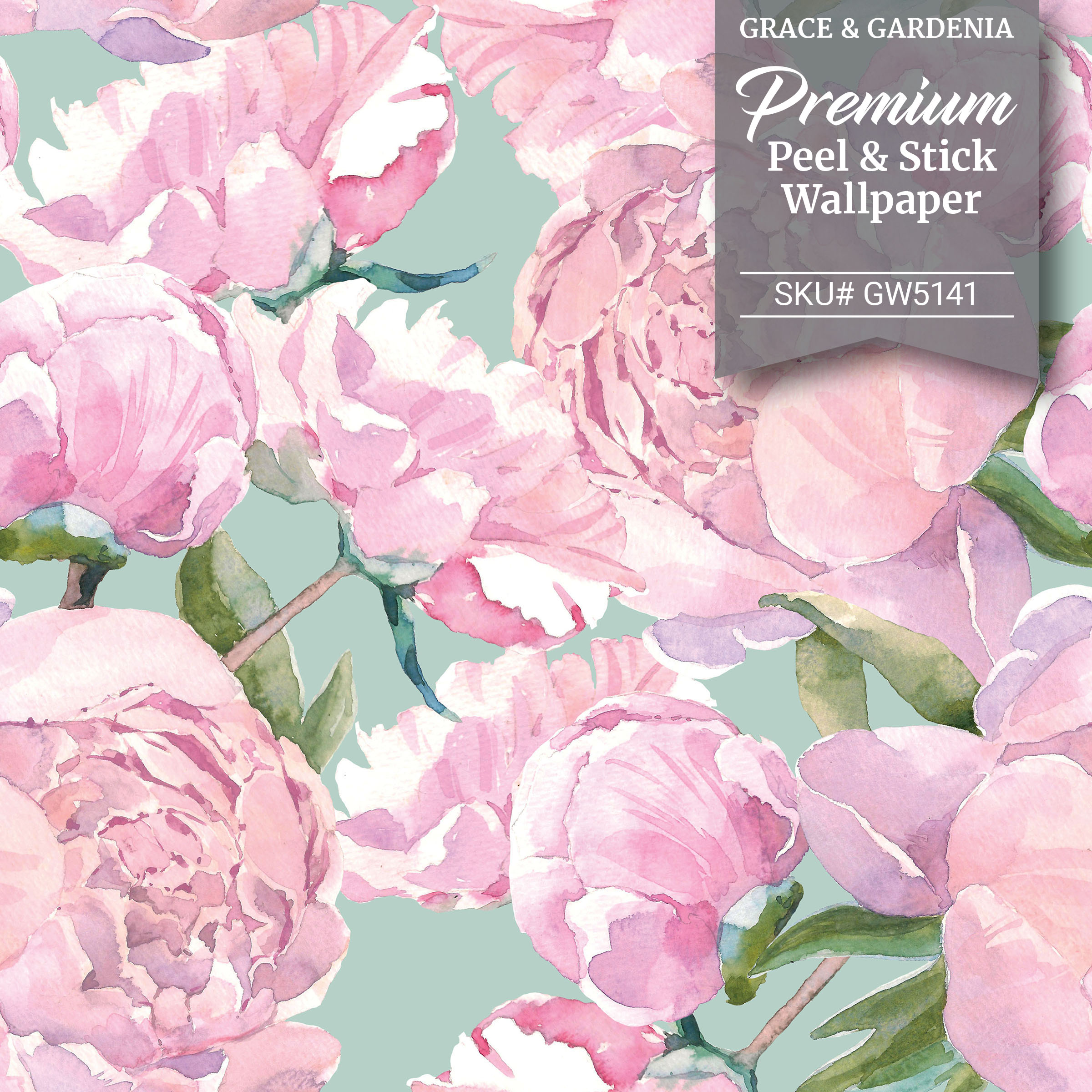 GW5141 Grace & Gardenia Pink Watercolor Peonies Peel and Stick Wallpaper Roll 20.5 inch Wide x 18 ft. Long, Pink Green