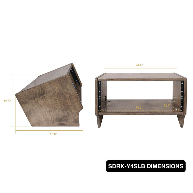The Sound Town SDRK-Y4SLB is a studio rack with 4U angled rack space, 19“ width and 12” depth. The panels are made from top-quality plywood, finished with a beautifully weathered brown hue, enriched with a delicate infusion of gray undertones. The 20-degree slanted face makes it easy to move in and out the equipment. If you’re in the market for an affordable studio rack and you enjoy hands-on builds, the Sound Town SDRK-Y4SLB case kit is the perfect option. This rugged case is built to hold amplifiers, wireless microphone receivers and other 19“ wide rack mountable equipment in your home or studio. It brings a great combination of style and function into your studio. Rail screws are included in the package. | ||||||||||||||||||||||||||||||||