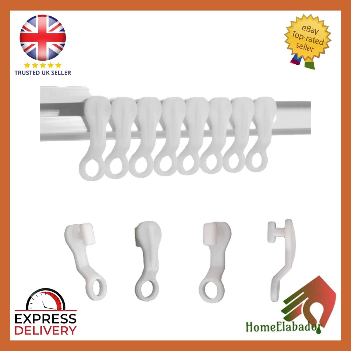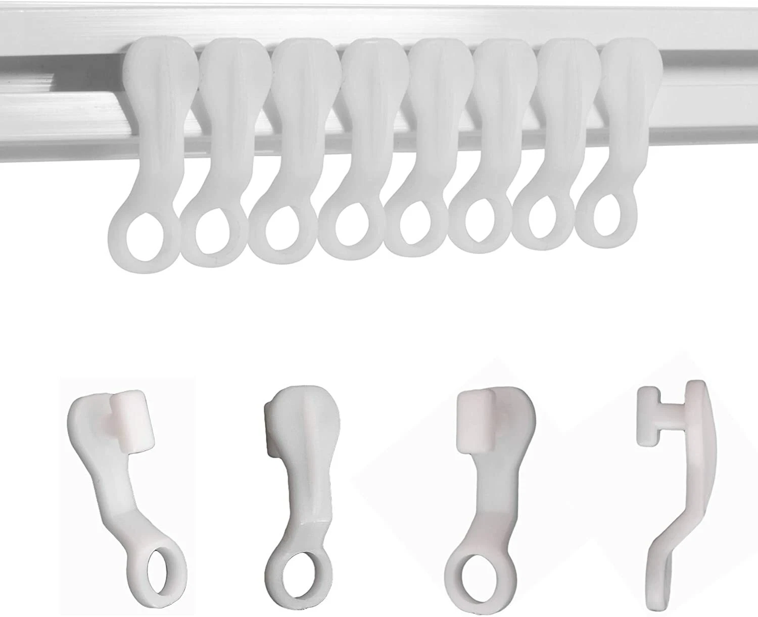 WHITE BATHROOM SHOWER CURTAIN HOOKS RUNNERS GLIDER RAIL TRACKS CLIP POLE SLIDES