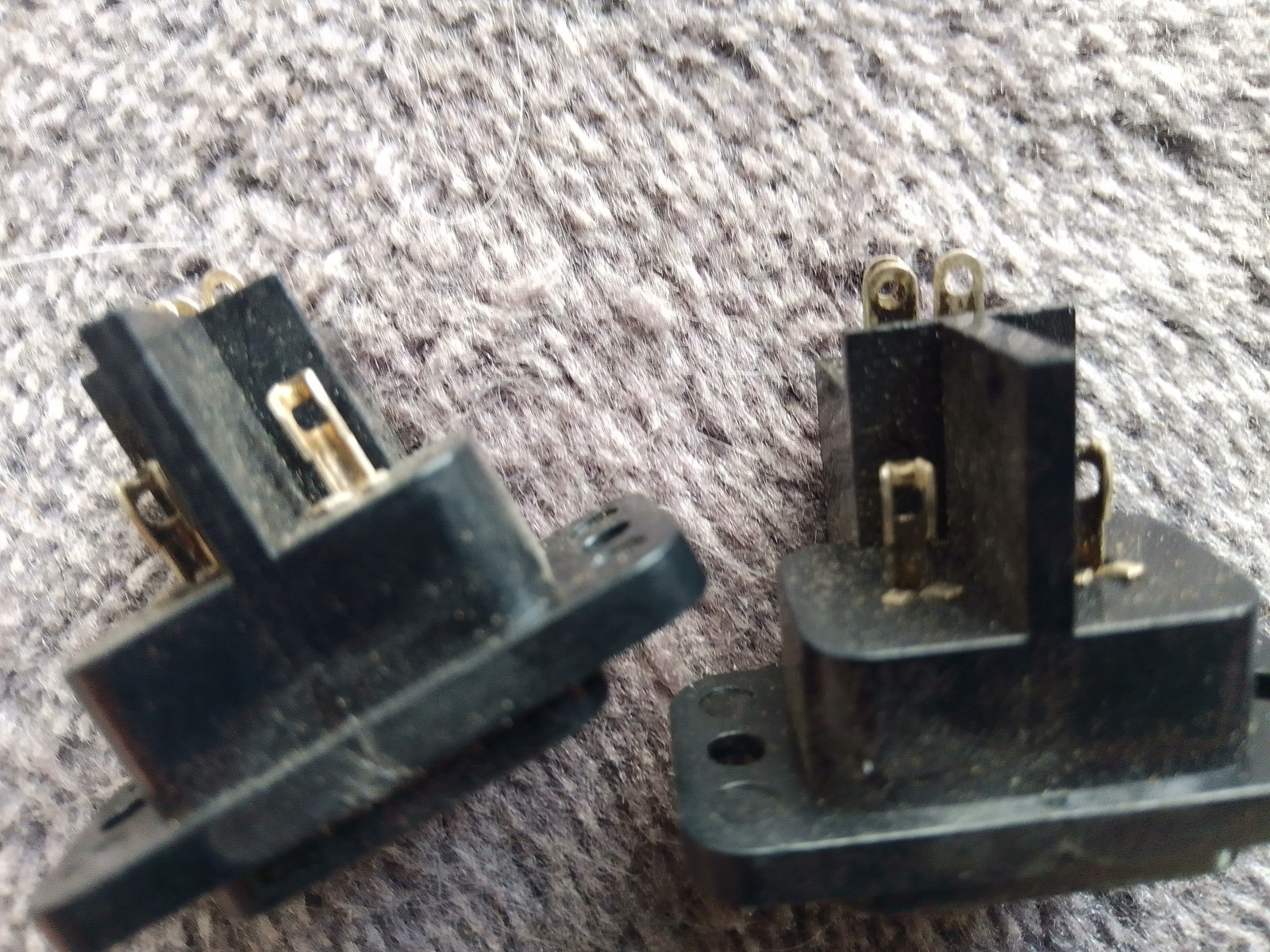 Die Buchsen haben 2 Kontakte, die ca. 8mm auseinander liegen.