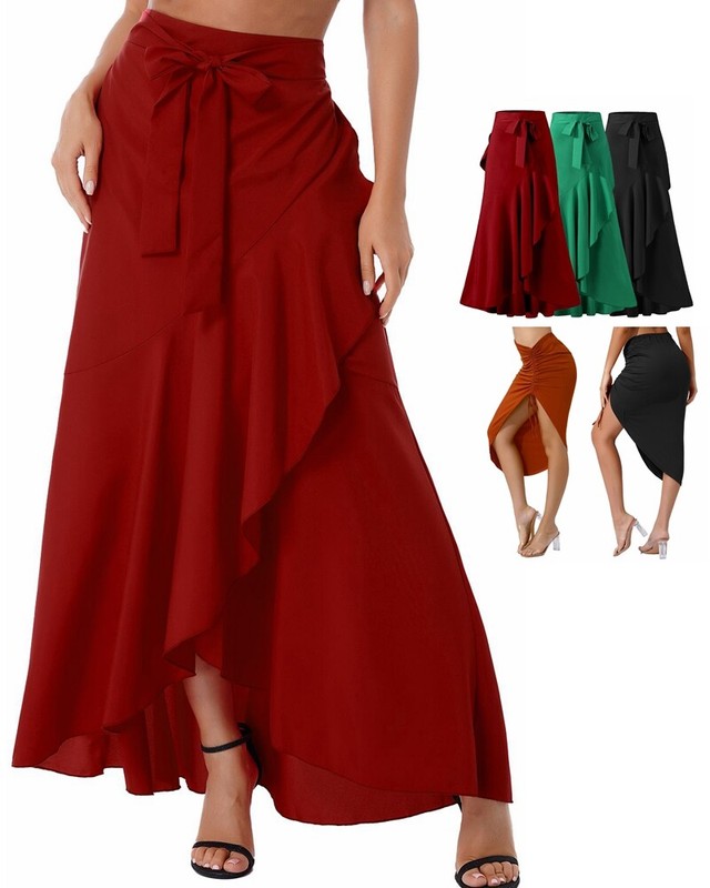 High waist flared skirt, show your legs much slender, ruffled bottom hem swing gently with footsteps.