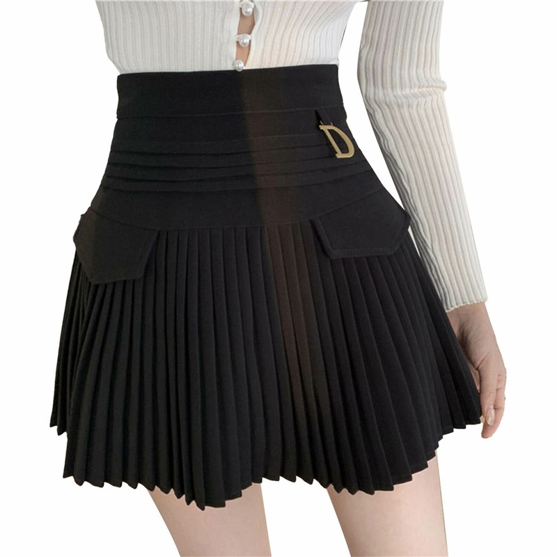 Women's High Waist Skirt PU Leather Pleated A-Line Skater Flared Mini Skirt Club