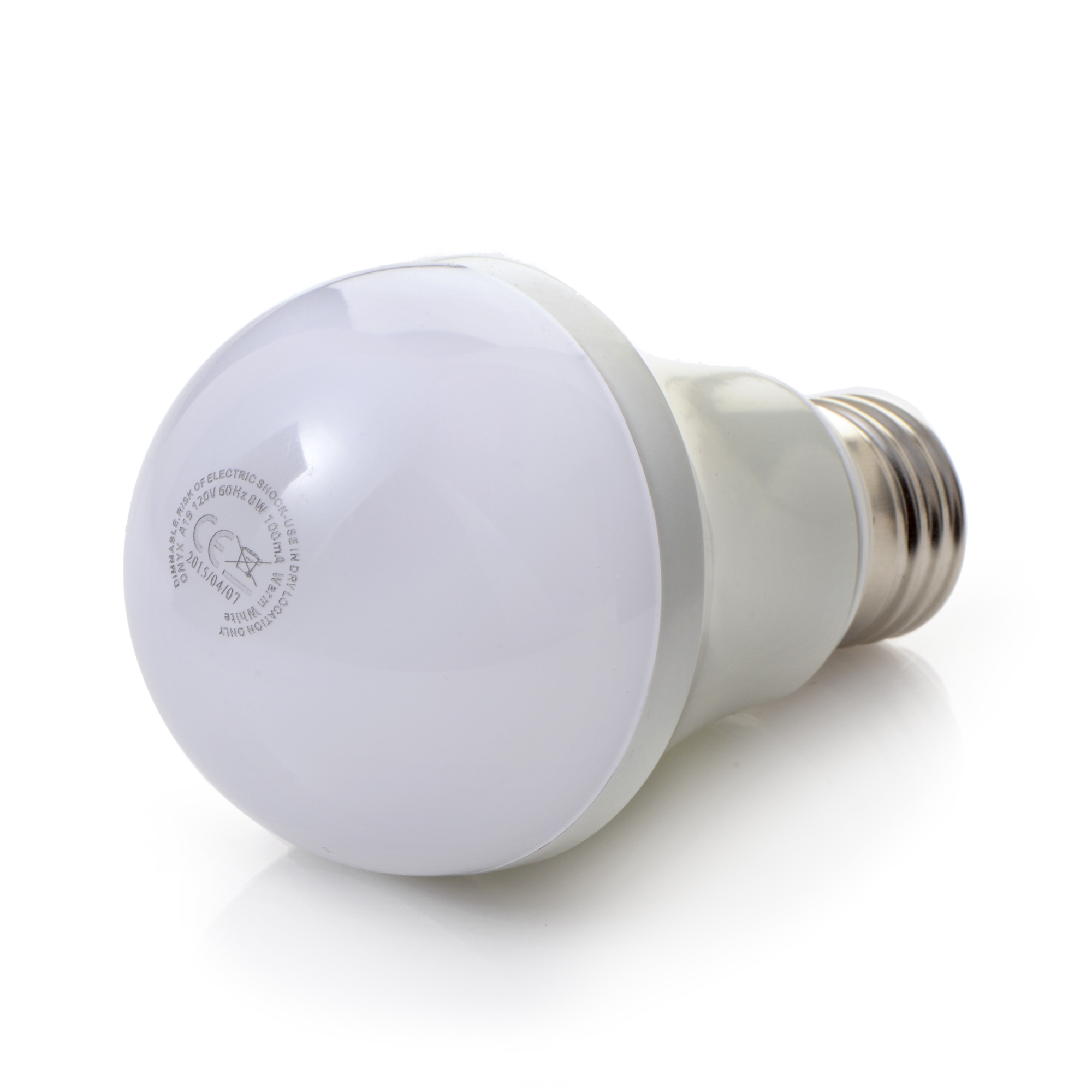 LED Bulb E26/E27 Base with high quality energy efficient LED chip. 800 Lumen. CRI>80 Full range dimmable (5-100%). No stroboscopic effect. No UV, no IR rays. Mercury Free. Light weight and durable Aluminum body. Great for use in any fixture. Suitable for dump locations. High quality polycarbonate lens with 40 degree beam angle. High quality LED chip and power supply for lamp longevity. Lifetime 35,000 hours (24 year 4 hour per day). 3 years warranty.