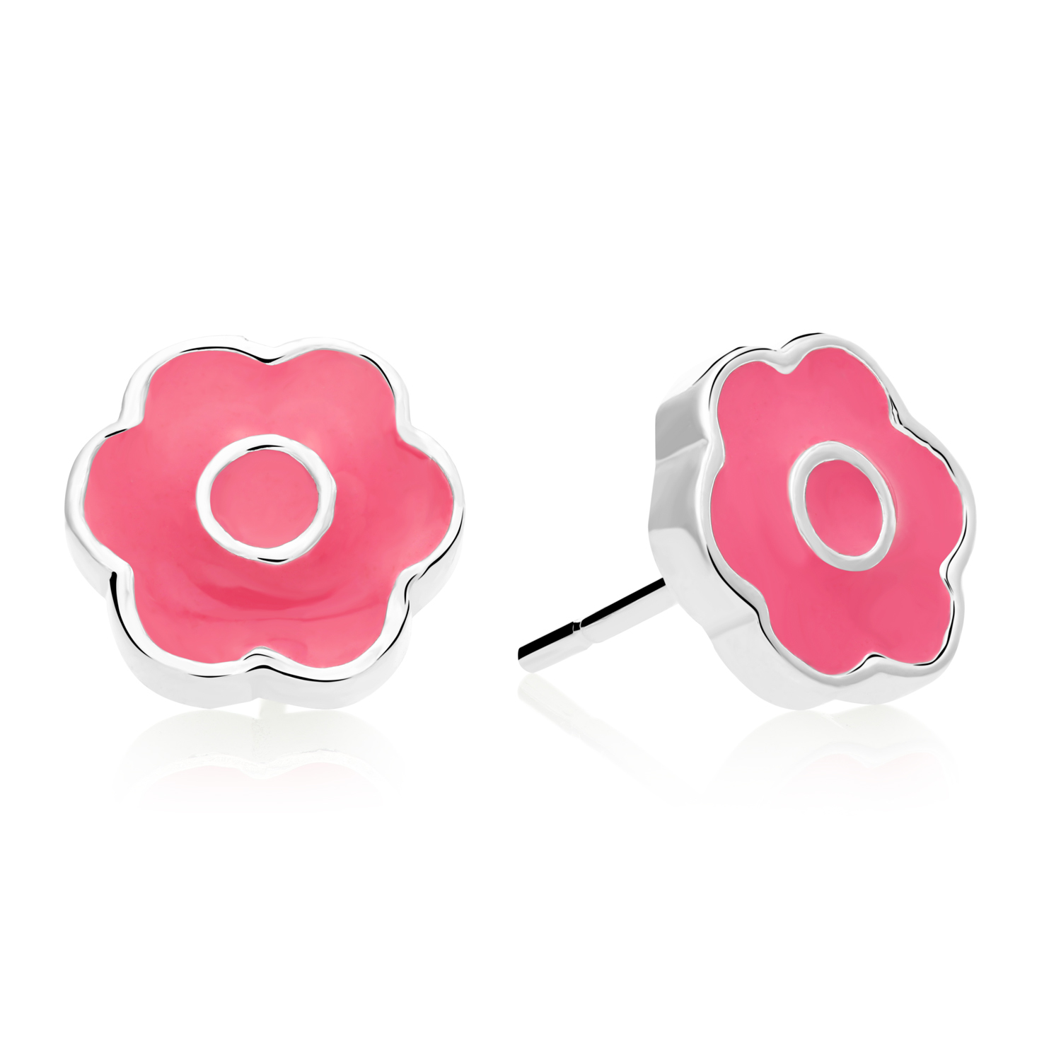 TILO Jewelry 925 Sterling Silver Small Baby Pink Flower Enamel Stud Earrings Solid Sterling Silver Hand Enameled Butterfly Push-back Studs Women, Girls, Unisex Kids