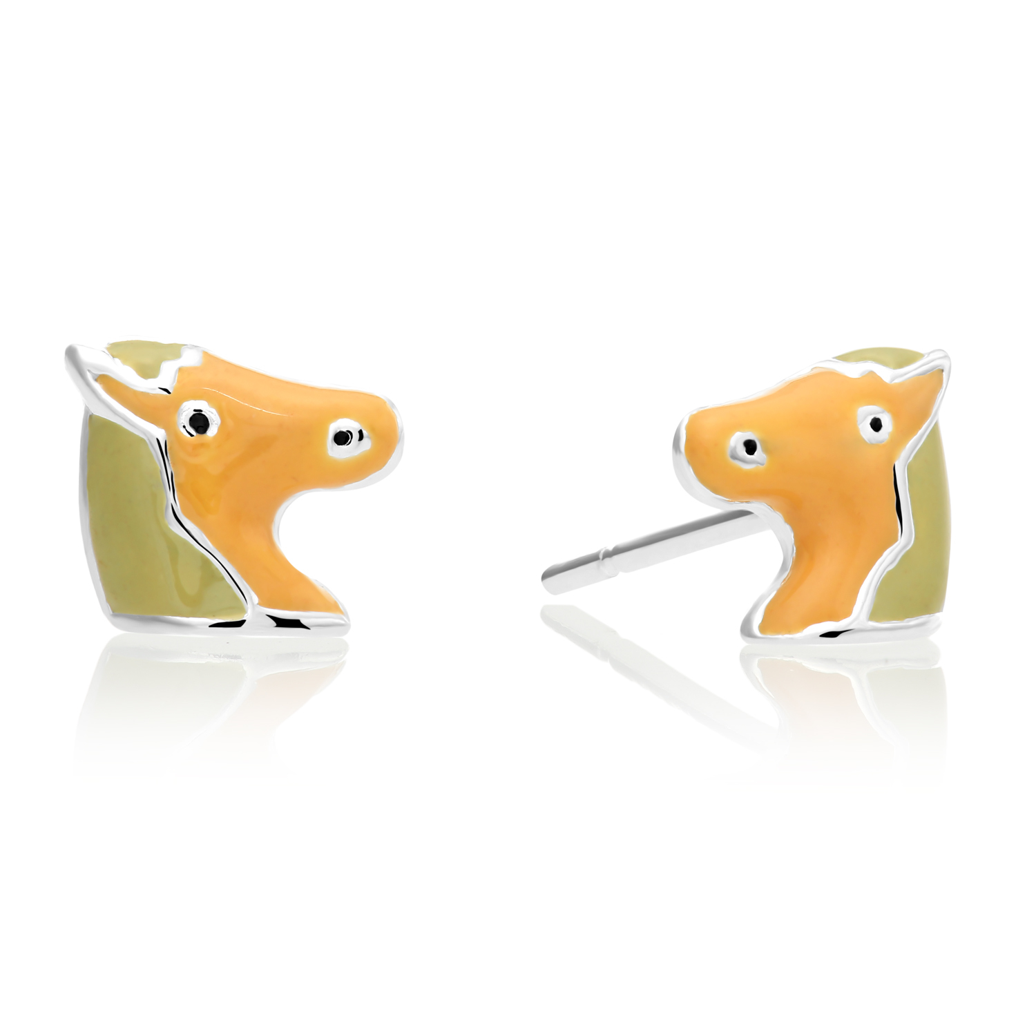 TILO Jewelry 925 Sterling Silver Small Baby Yellow Pony Enamel Stud Earrings Solid Sterling Silver Hand Enameled Butterfly Push-back Studs Women, Girls, Unisex Kids