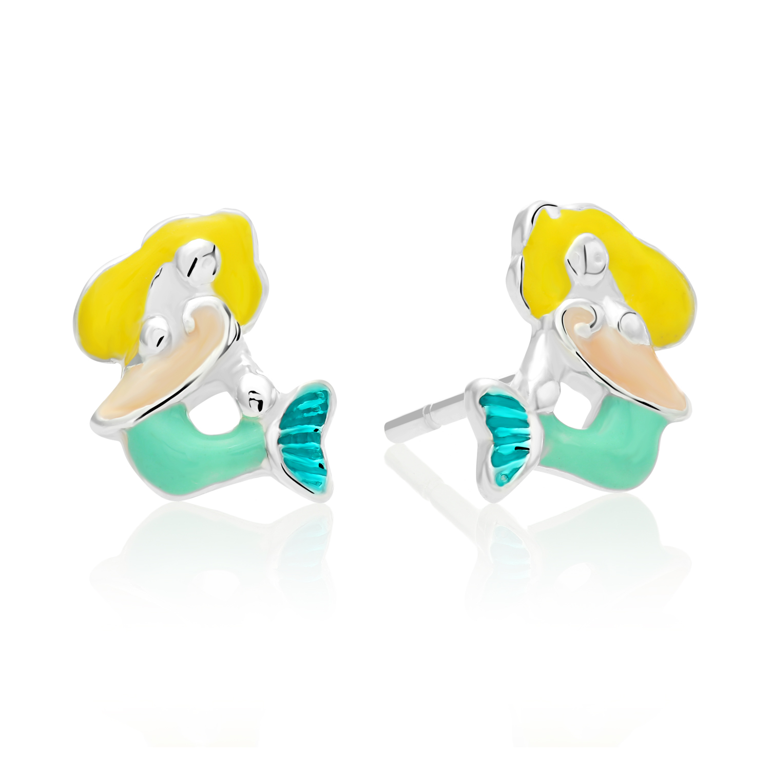 TILO Jewelry 925 Sterling Silver Small Little Mermaid Enamel Stud Earrings Solid Sterling Silver Hand Enameled Butterfly Push-back Studs Women, Girls, Unisex Kids