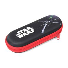 Robustes Brillenetui aus Textil in Schwarz-Rot mit "Star Wars" Aufdruck und Reißverschluss, innen roter Stoff.