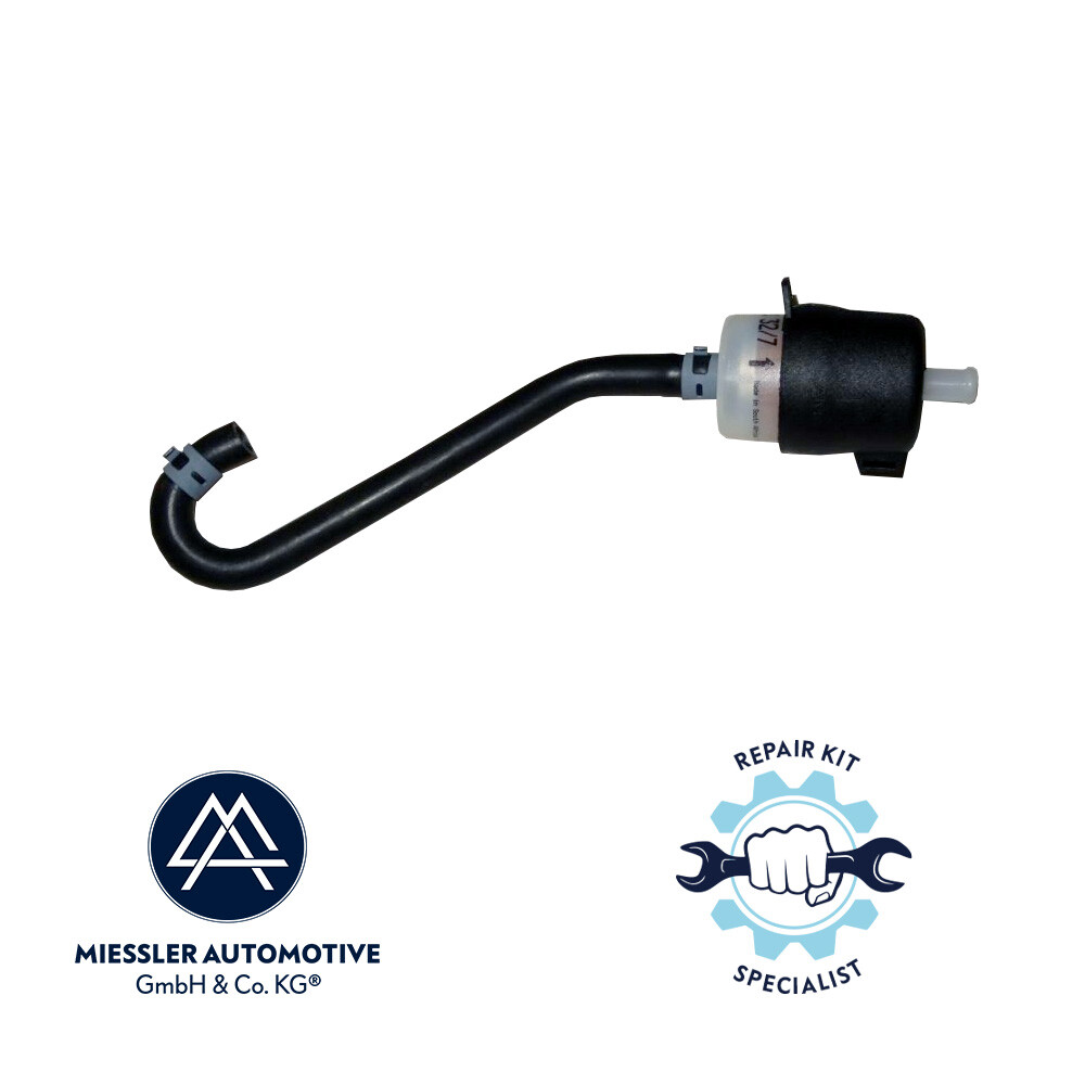 This additional silencer / noise absorber 4Z7616012 for the air supply system / compressor of the pneumatic chassis is available including a hose and fastening clips for easy installation.
