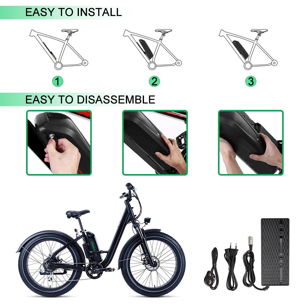 Design ergonomique et large applicabilité : la batterie de vélo électrique dispose d'un support de montage qui peut être monté sur la plupart des trous de vis de bouteille d'eau dans le cadre. Compatible avec les vélos électriques 48V, les vélos, les VTT et plus encore.