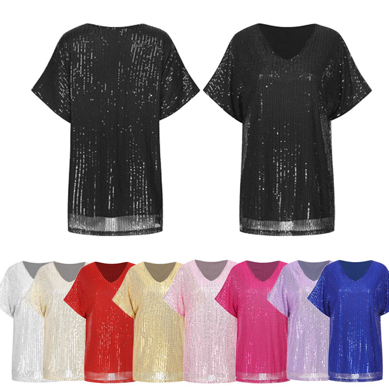 Glossy appearance, solid color, classic round neck and short sleeve, slim fit, cropped length.