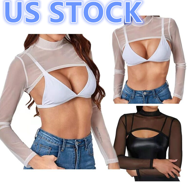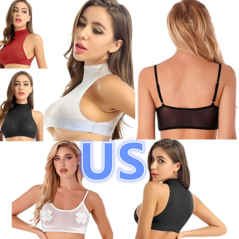 Womens See-through Mesh Cutout Crop Top U Neck Sleeveless Vest Lingerie Tank Tops.