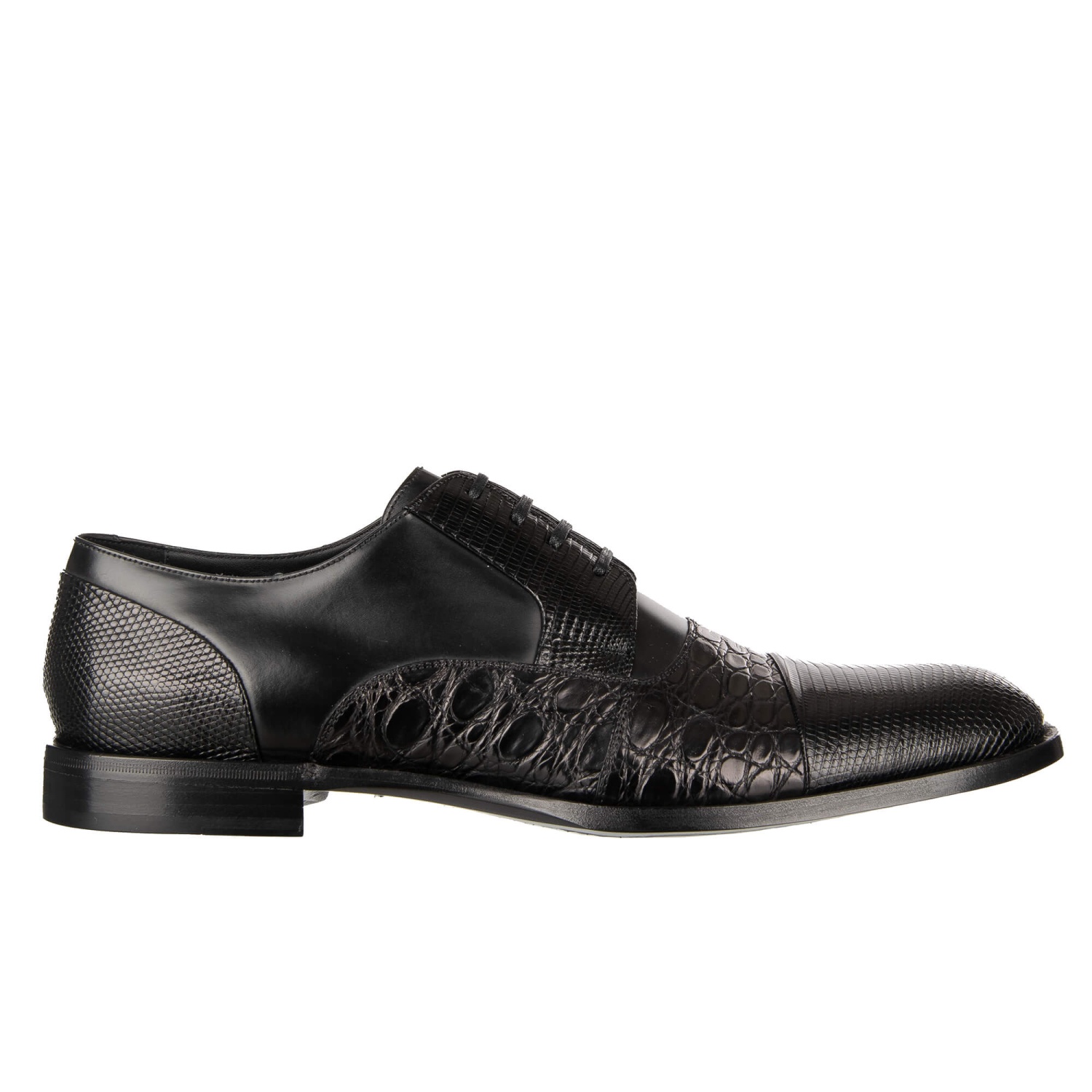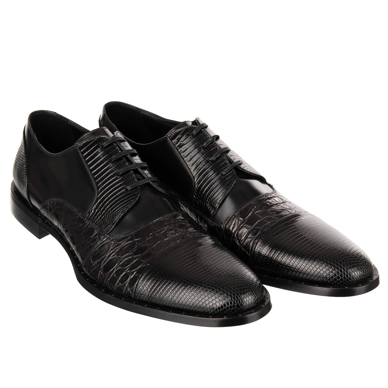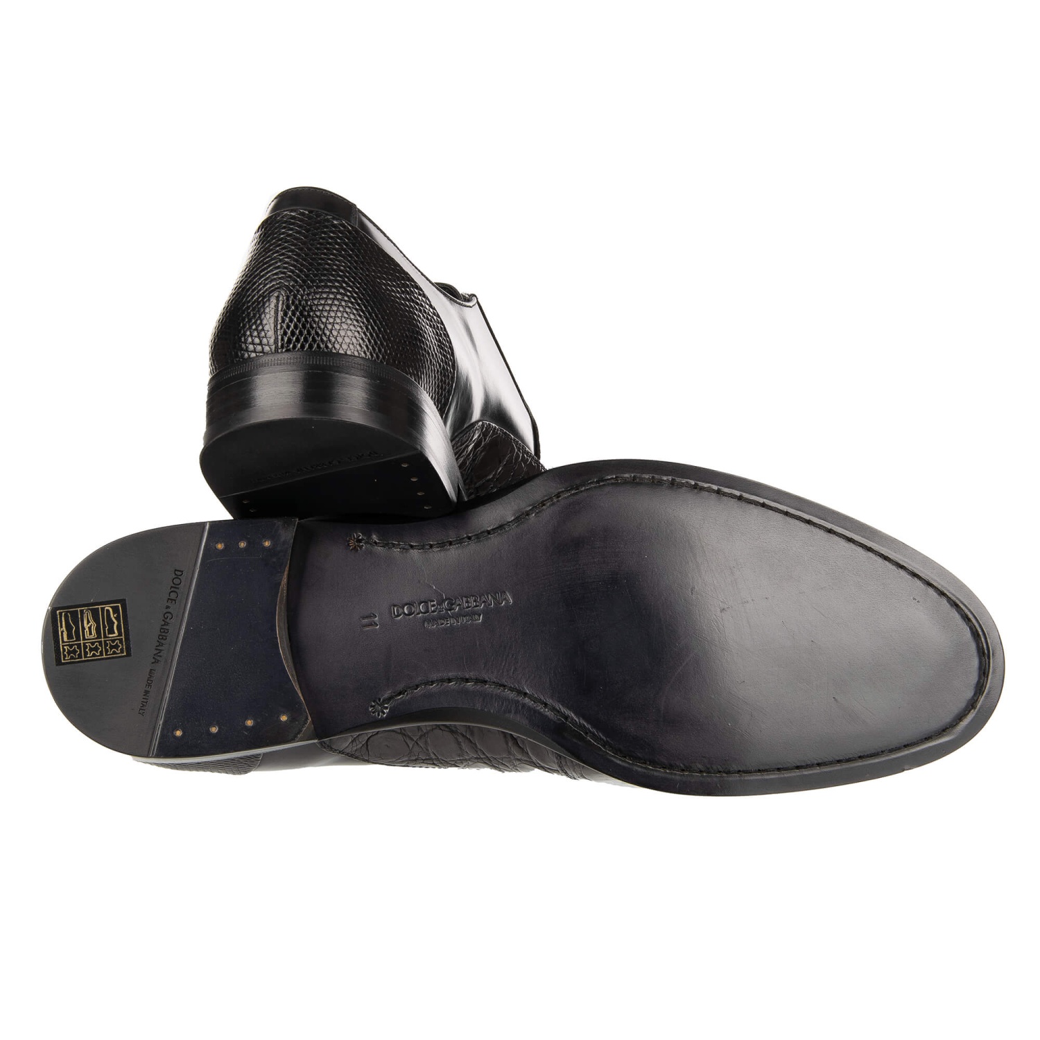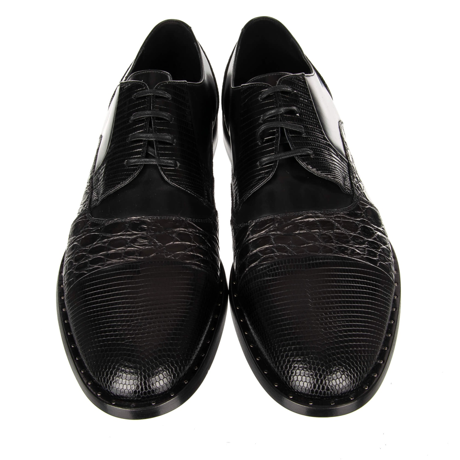 - Exklusive, formelle Patchwork Derby Schuhe NAPOLI aus Waran-, Kaiman- und Kalbsleder in Schwarz von DOLCE & GABBANA