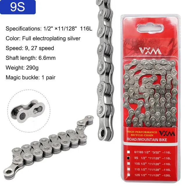 VXM Bicycle Chain 6 7 8 9 10 11 Speed Velocidade Electroplated Colorful Sliver Chain MTB Chains Part 116 Links