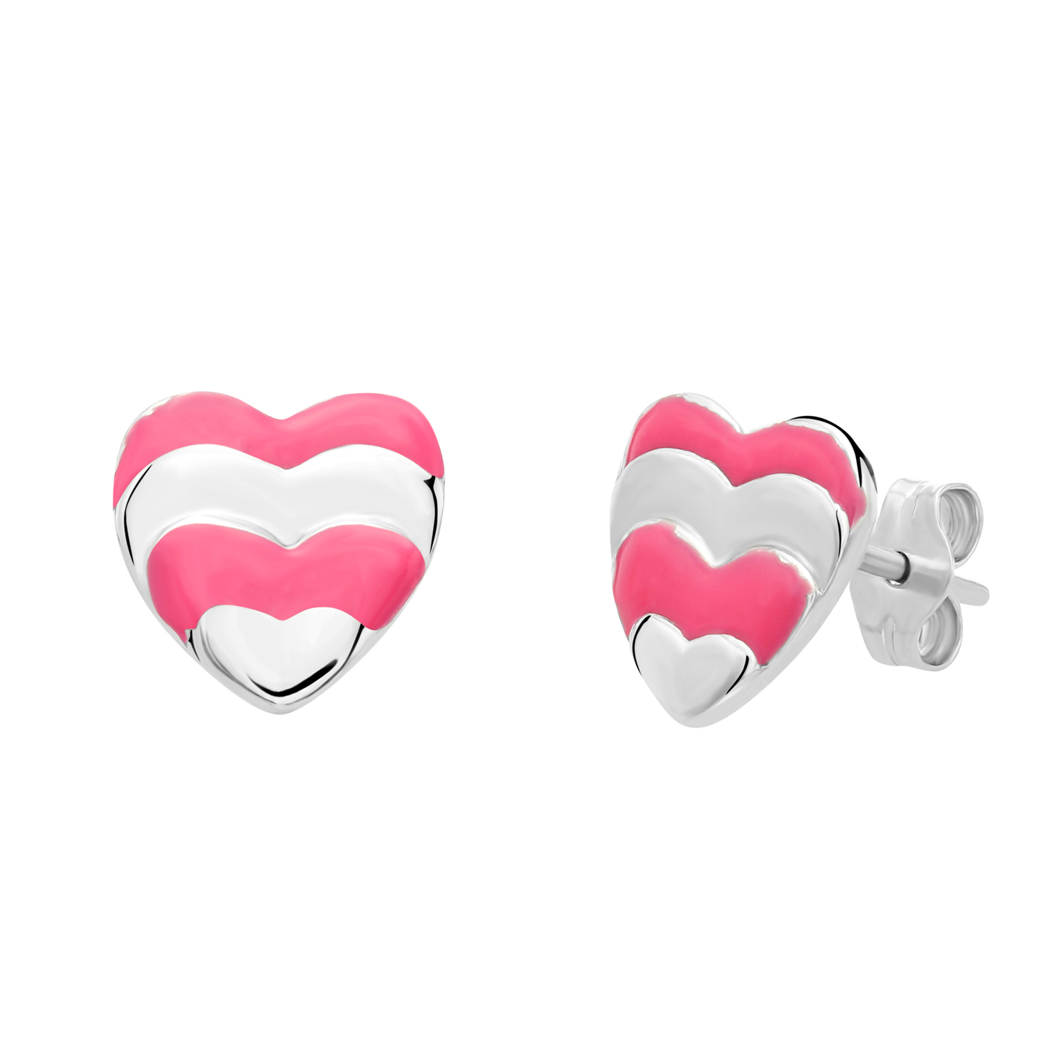 TILO Jewelry 925 Sterling Silver Small Baby Pink Heart Enamel Stud Earrings Solid Sterling Silver Hand Enameled Butterfly Push-back Studs Women, Girls, Unisex Kids